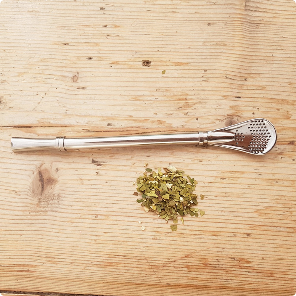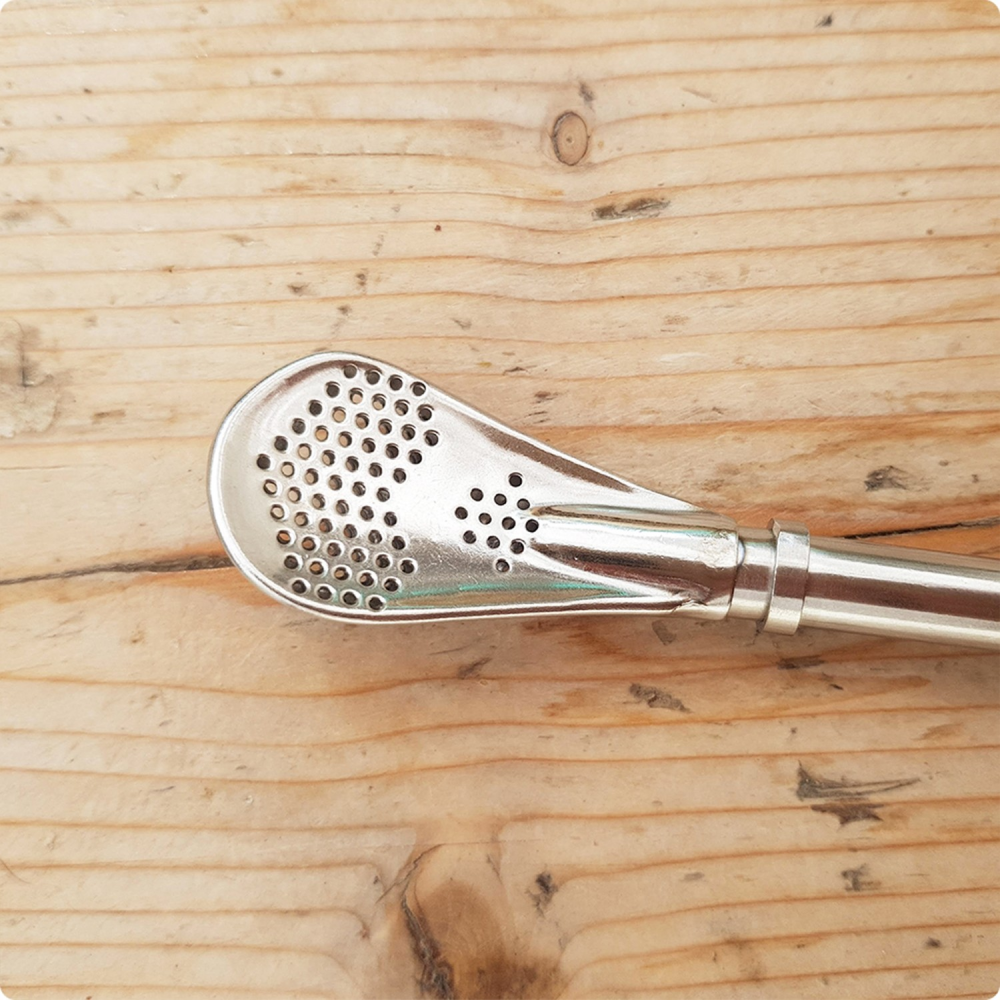 La Bombilla est une sorte de paille en inox avec un filtre intégré à une extrémité et un embout de l’autre côté. Cela évite de boire la matière de maté avec l’infusion ! Super pratique.