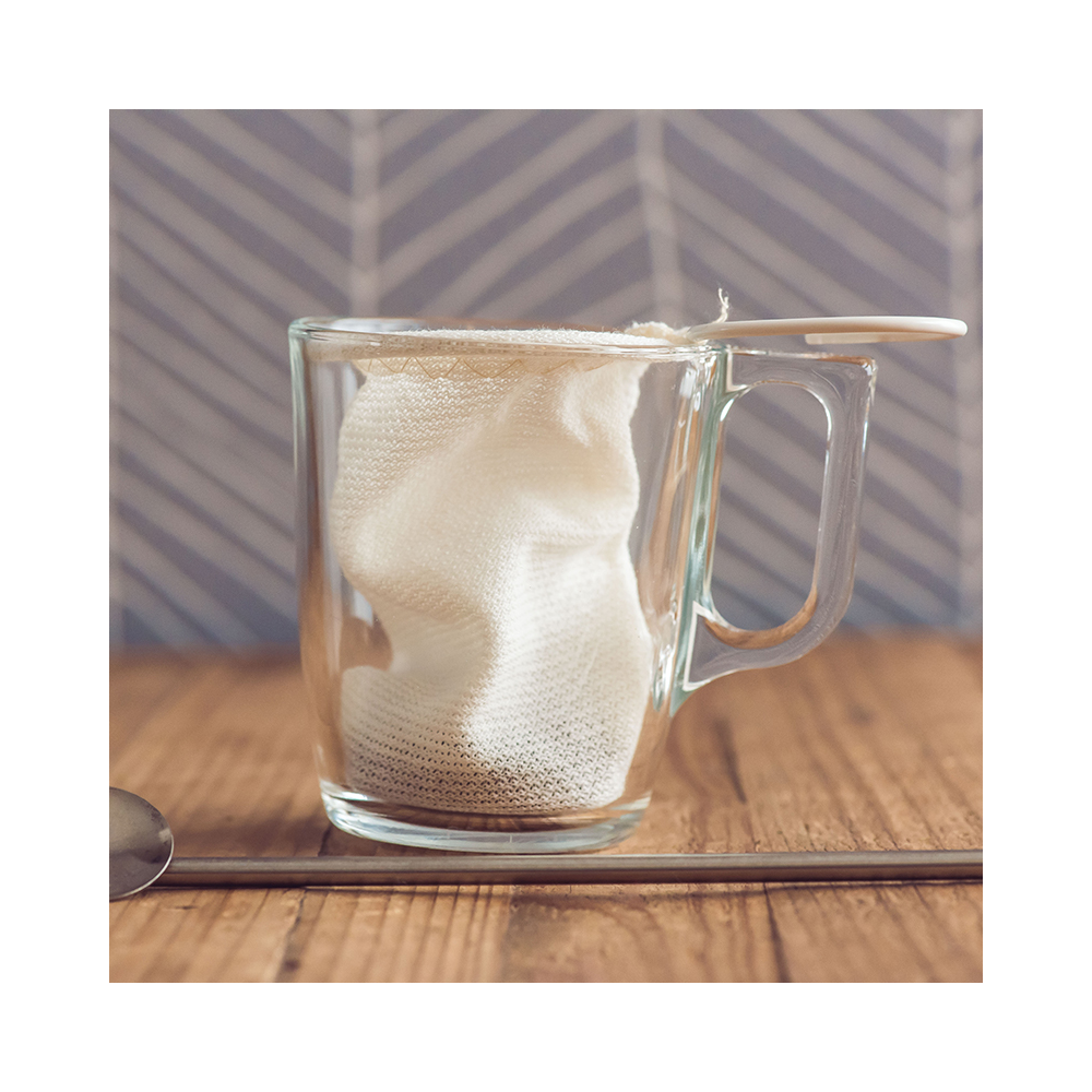 Non blanchi au chlore, ce filtre à thé est facile d'entretien : une fois terminé, videz la matière de thé puis rincez le filtre à l'eau et suspendez-le à votre robinet pour qu'il sèche.