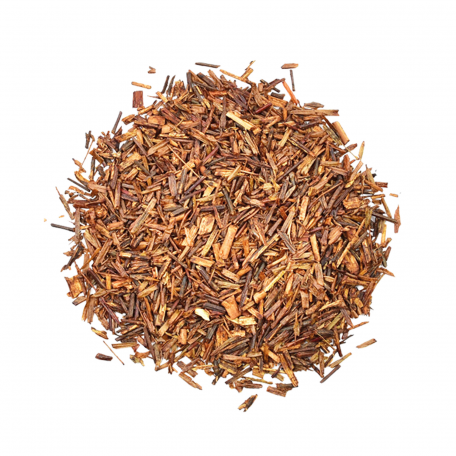 Le Rooibos est une plante qui vient d’Afrique du Sud. Ses fines aiguilles seront séchées au soleil qui, une fois infusées, donneront une liqueur rougeoyante. Son nom de thé rouge lui vient de là, même si ça n’est pas du thé. Cette liqueur est sans théine. Elle présente des arômes naturellement vanillés et légèrement sucrés qui plaisent beaucoup aux petits comme aux grands.