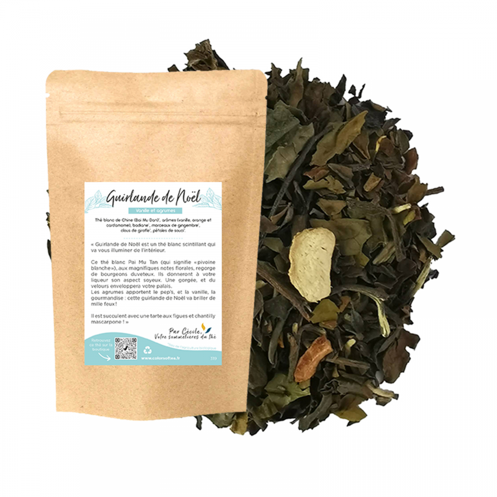 Guirlande de Noël est un thé blanc scintillant qui va vous illuminer de l’intérieur.
