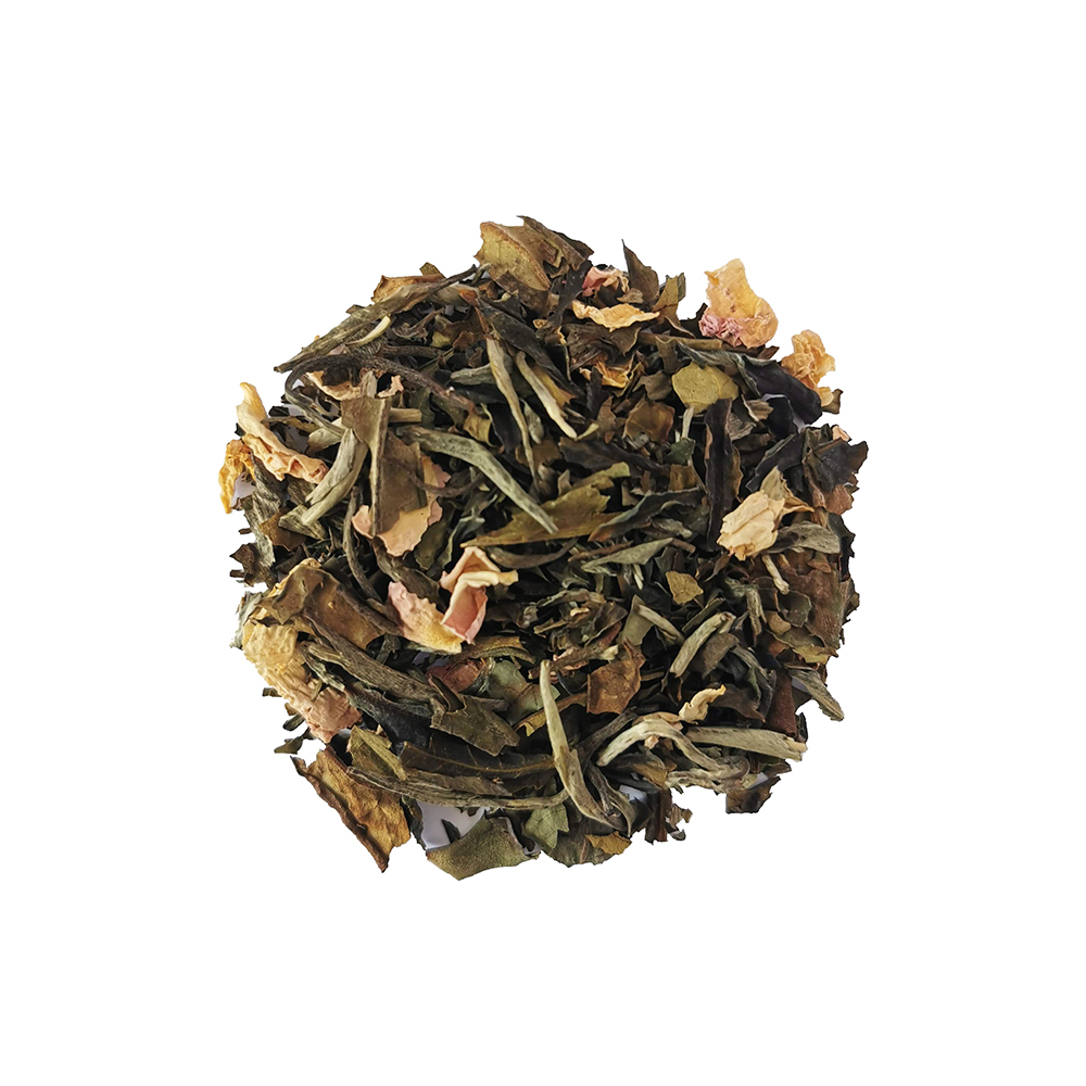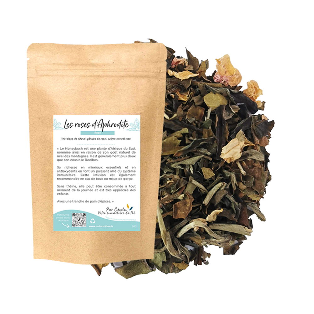 - Thé blanc de Chine*, pétales de rose*, arôme naturel rose*