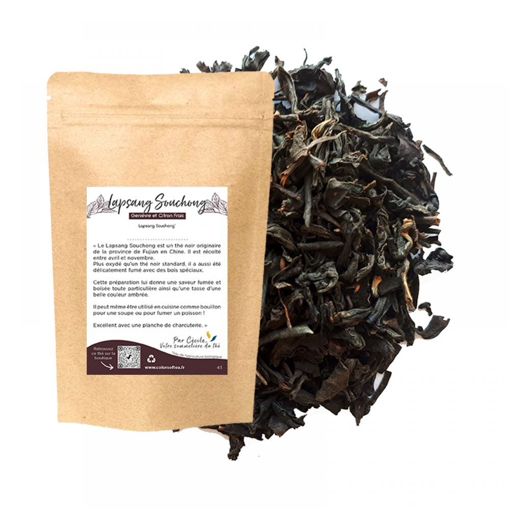 Le Lapsang Souchong est un thé noir originaire de la province de Fujian en Chine. Il est récolté entre avril et novembre.