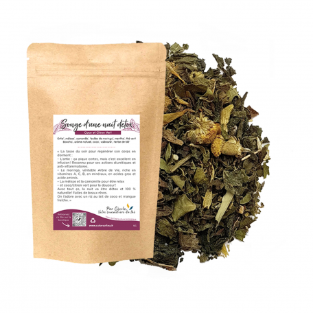 Songe d’une nuit détox c’est la tasse du soir pour régénérer son corps en dormant. Le mélange d’ortie, de moringa et de mélisse allié à la coco et au citron c’est la garantie d’une nuit tranquille bénéfique pour le corps et l’esprit !